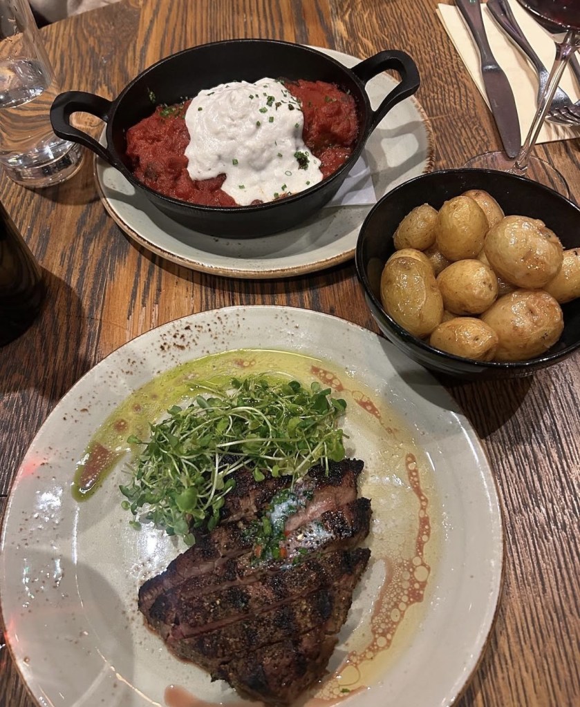 The moussaka was a vegan dish, with minced mushrooms sitting in for the meat, while superstraccia took the place of béchamel. Between layers of aubergine and tomato ragü, this was this ultimate comfort food, a hearty hug served on a plate. As meat-eaters, we can confidently say that the mushrooms were a suitable replacement for lamb, with the same succulent texture and rich flavour. However, we took note that while we were joyfully satisfied, we felt miraculously light afterwards despite the hefty portion. Consider this a testament to the benefits of plant-based eating. The rump fillet of 28 day matured British grass-fed beef was cooked to perfection. As requested, the juicy finish was medium-rare, and the tender beef cut like butter.