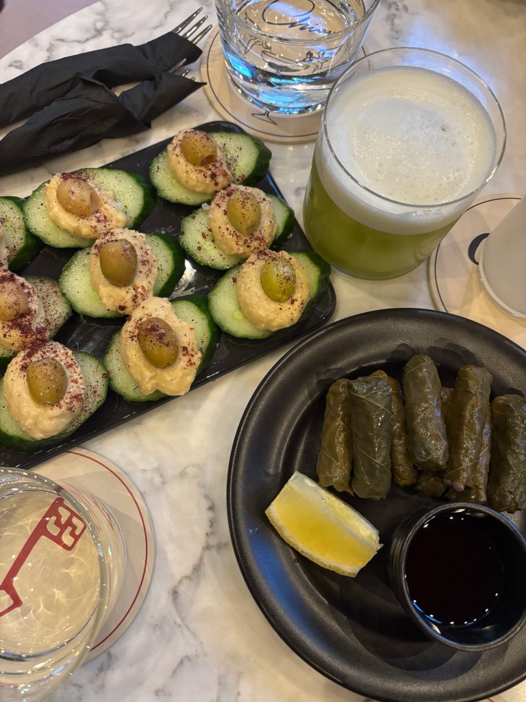 A non-negotiable for a successful cocktail bar is an extensive snack menu, and Chiave’s selection of nibbles hit the spot to satisfy those post-work pangs of hunger. To start, we went for the Cucumber Bites, a generous platter of cucumber slices stacked with a dollop of hummus and topped with an olive. Refreshing, creamy, and meaty, the flavours blended together wonderfully with each bite. Next to try was the Chiave Sarma. This traditional Turkish snack consists of ground meat and rice wrapped in a vine leaf and bursting with flavour. Of course, we couldn’t say no to a bowl of olives and with vegetable crisps, popcorn, and nuts on the menu too, there’s a snack to satisfy every craving.