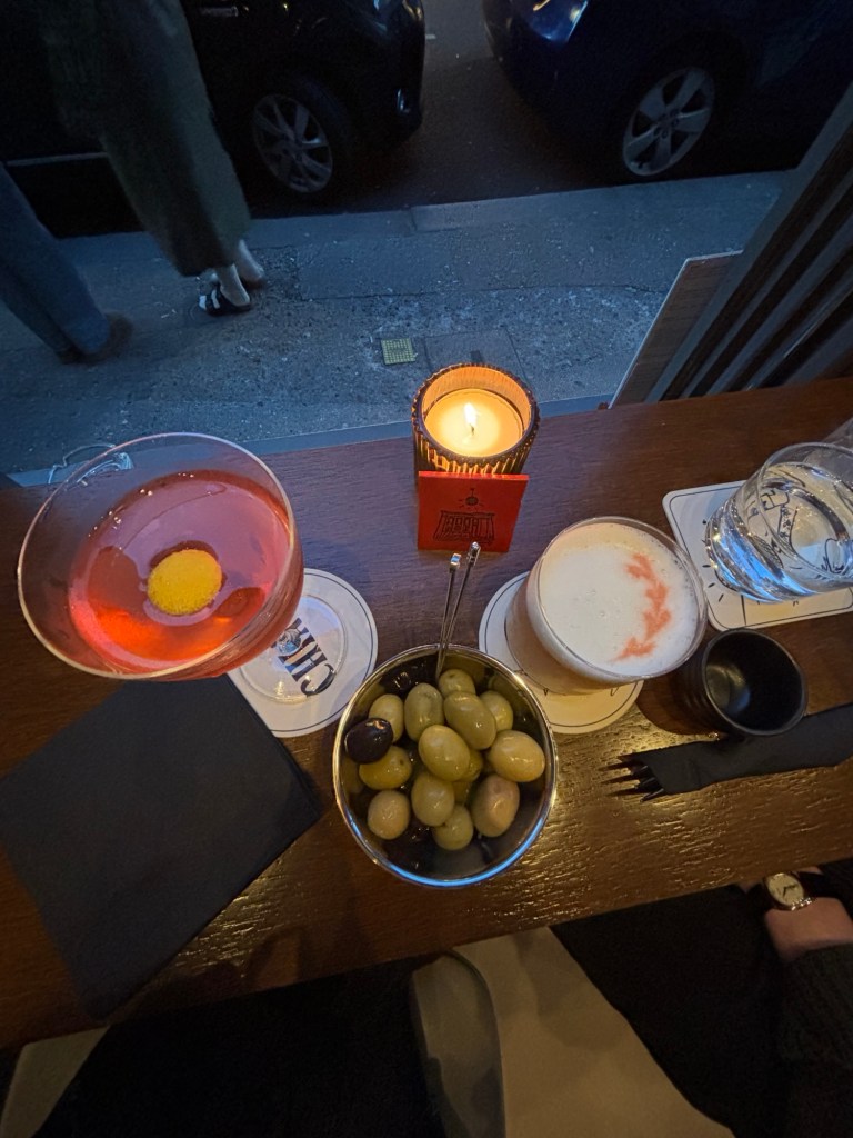 Translating to “key” in Italian, Chiave was designed to symbolise a sense of belonging. It is the key to a place that feels like home, because every Londoner needs a local cocktail bar. Nestled into Redchurch street, Shoreditch’s swankiest lane-way, Chiave emits an enticing glow from the low lighting and candle-lit hue inside. As we stepped through the door we were met with a friendly smile and to our delight, directed to the exact seats we had our eye on: two high top stools by a large open window, letting in the fresh spring air and the buzz of city-slickers spilling out onto the streets outside. One could easily pass hours people-watching in this exact spot, sipping on crafted cocktails and taking notes of the latest fashion being sported in one of London’s trendiest boroughs.