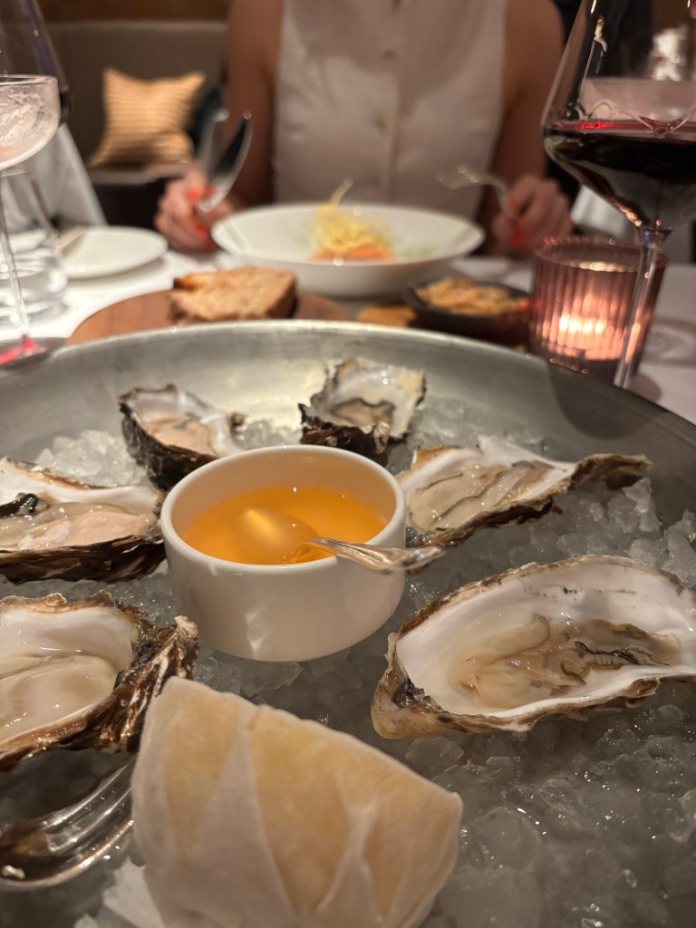 The menu is a delightful blend of fine dining and traditional. The freshly-baked sourdough is complimentary, a rarity in this profit-driven city. To spread on top, there is a soft N’duja butter, melting effortlessly into the bread and bursting with flavour. The drinks list is varied and vibrant, curated by the company’s mixologist, Giacomo. We opted for the Hanky Panky and the Gimlet, a cocktail we now know, thanks to the menu’s description, is one which Dr. Sir Thomas Gimlette prescribed to officers to help with disease in 1879- you learn something new every day!